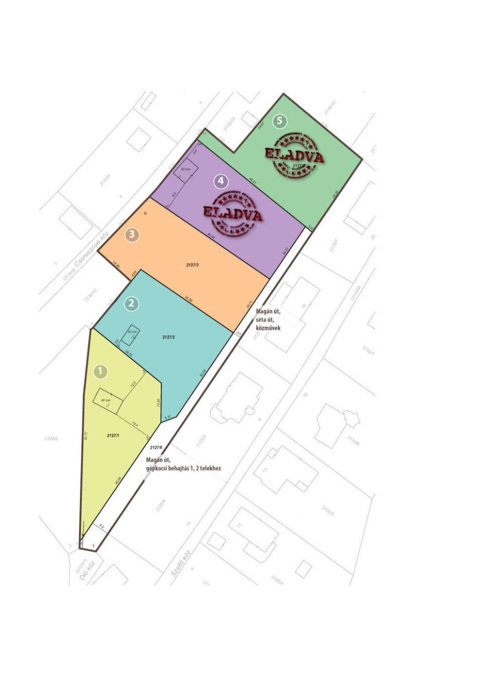 Az egyes telkek részletes műszaki adatait ld. a MŰSZAKI ADATOK menüpontban.